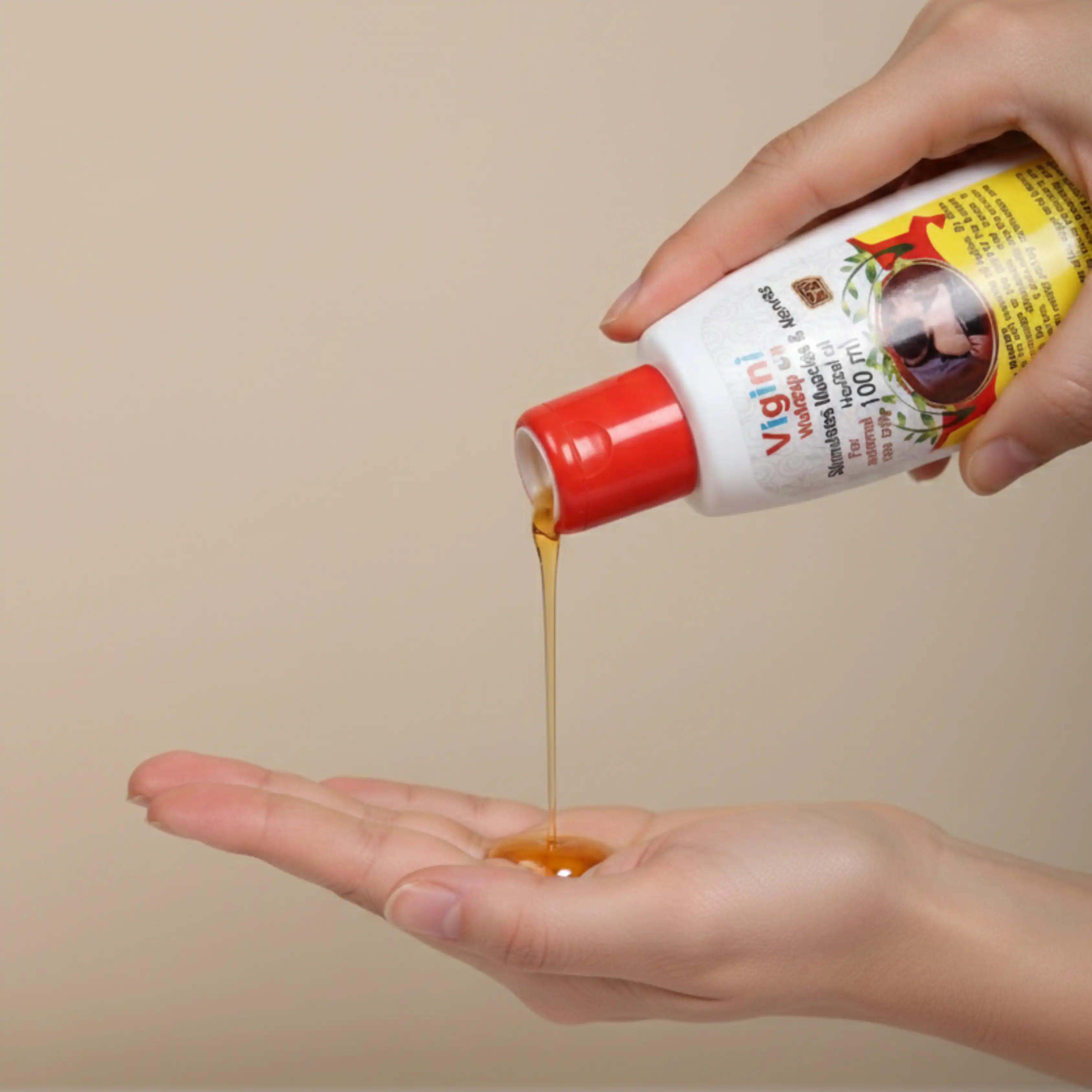 Take a few drops of Vigni Oil on your palm.